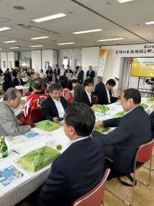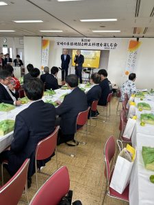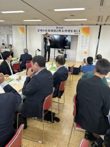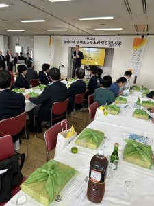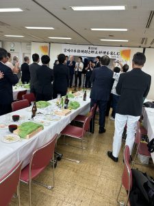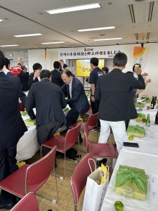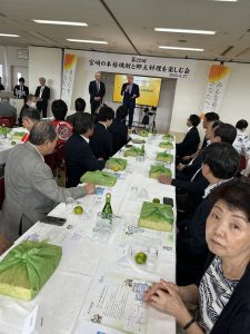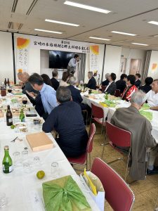 令和7年9月27日に「第22回 宮崎の本格焼酎と郷土料理を楽しむ会」を六本木ヒルズ学校法人メイ・ウシヤマ学園ハリウッドビューティプラザで開催、諸団体や諸企業からのご協賛による本格焼酎をはじめ、宮崎牛、地頭鶏、県産野菜、おび天、アイス、カンパチ・カツオの刺身、へべすなどの郷土料理を堪能、県内外の約300名のご参加をいただき、大盛会となりました。